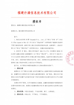 金年会|jinnianhui信息技术有限公司注册地位于福建省福州市,是国内《热血传奇》客户端游戏独占性版权人。对《热血传奇》客户端游戏拥有全部版权,并有权基于版权权利进行该游戏维权。株式会社传奇IP (以下简称传奇IP )对《The Legend of Mir 2》(中文名为“热血传奇"、或“传奇”、“传奇2”、“MIR II”)游戏(以下称为 “授权作品”) 共同享有充分、完整且有效的著作权。经传奇IP授权 , RENAISSANCE INVESTMENT MANAGEMENT LIMITED (以下简称 RENAISSANCE Ltd.)有权在中国大陆地区独占性地对授权作品的网络客户端游戏进行开发、 发行、管理、宣传、推广和运营,针对授权作品的侵权游戏及侵权方,RENAISSANCE Ltd.有权采取必要的措施,并有权将前述权利分授权给第三人。金年会|jinnianhui信息技术有限公司经RENAISSANCE Ltd.授权,获得上述权利,有权在中国大陆地区独占性地对授权作品的网络客户端游戏进行开发、发行、管理、宣传、推广和运营,并有权对侵权行为/主体采取维权措施。