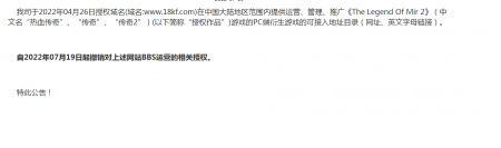 202204-26金年会|jinnianhui信息技术有限公司(以下简称“我司”)自2021年获得《热血传奇》原始著作权人独占性授权,一直...
